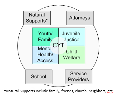 CYT is a team of Family Navigators*, Child Welfare workers, and Probation Officers who work with Crossover Youth and their families.