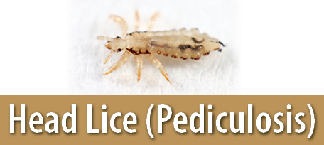 Pediculosis is an infestation of the hairy parts of the body or clothing with the eggs, larvae or adults of lice. The crawling stages of this insect feed on human blood, which can result in severe itching. Head lice are usually located on the scalp, crab lice in the pubic area and body lice along seams of clothing. Body lice travel to the skin to feed and return back to the clothing.